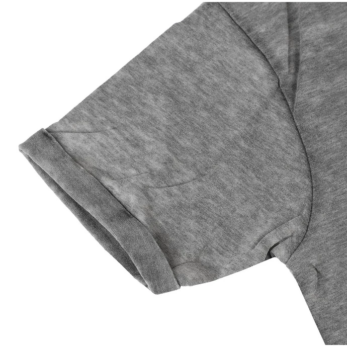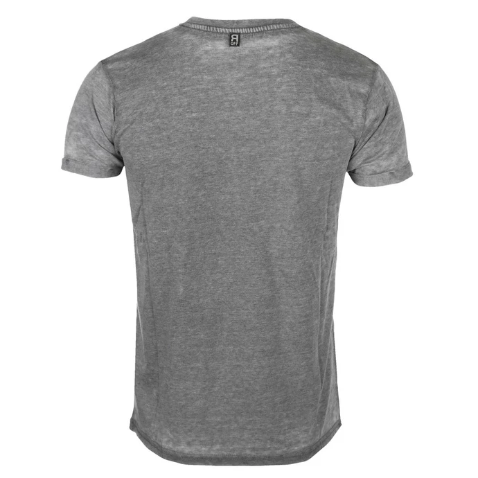 Men’s t-shirt with front print. The t-shirt is made of very thin and airy material, it also has a casual look and the ends of the sleeves are rolled – see photo. The t-shirt weight is uneven: some parts are thiner (worn-in look) than others. Composition: 85% polyester, 15% cotton. Color: grey – washed. Approx. dimensions in centimeters (CIRC. is 2x width) Please note that the dimensions stated in the table below are only approximate and that the actual sizes between different products and styles may vary.