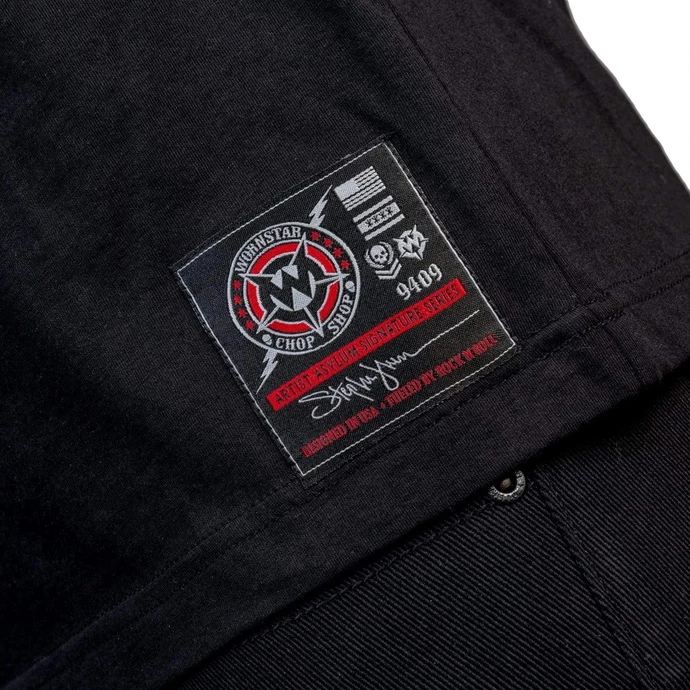 Men’s stylish t-shirt with a quality print. Designed in U.S.A. Composition: 100% cotton. Brand: WORNSTAR. Color: black Wash inside out, in a gentle program at low temperatures. Approximate dimensions in cm (CIRC. is 2x width)