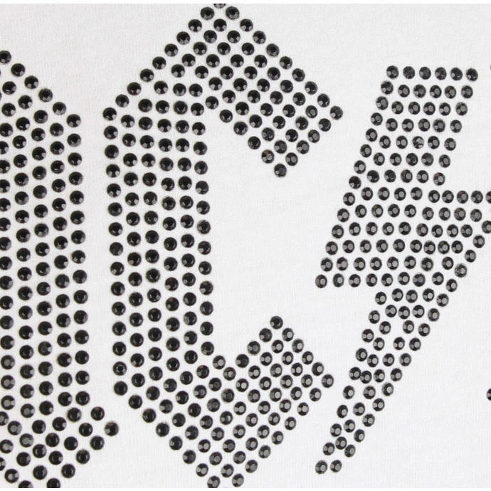 is made up of lots of small pyramids, the pyramids are glued to the shirt with
